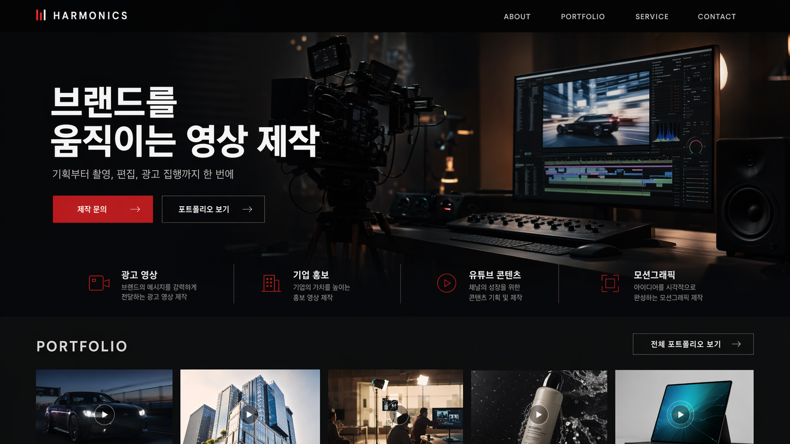 브랜드 캠페인, 기업 홍보, 제품 필름, 유튜브 콘텐츠까지 목적에 맞는 영상 결과물을 제작합니다.